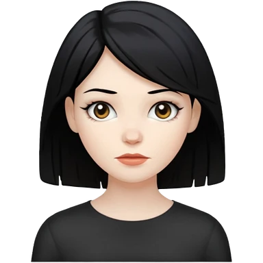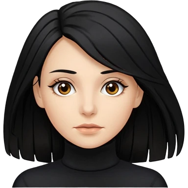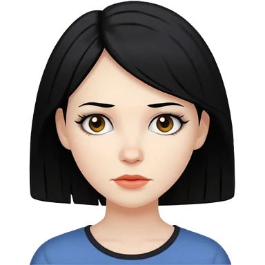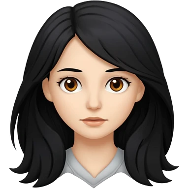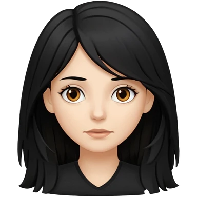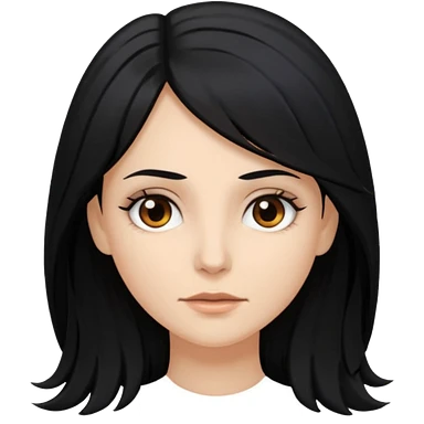 white woman with choppy long black hair and brown eyes emoji