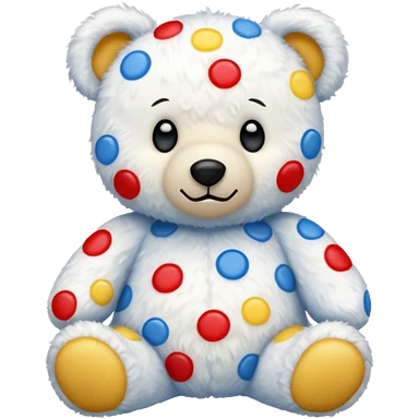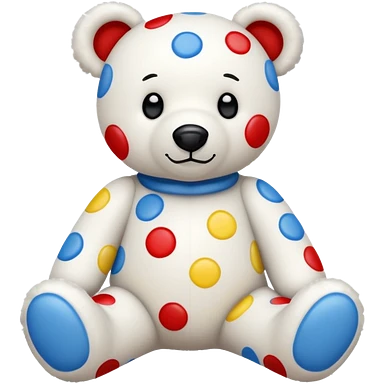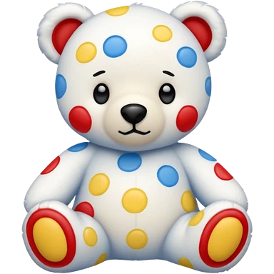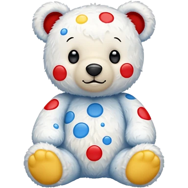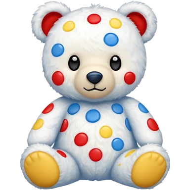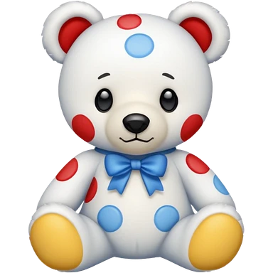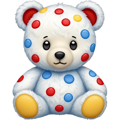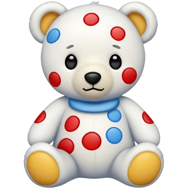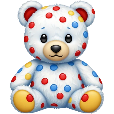 White teddy bear with blue, red and yellow spots emoji | AI Emoji Generator