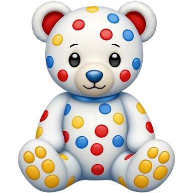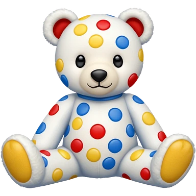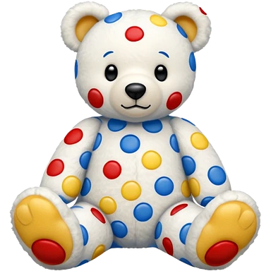 White teddy bear covered with blue, red and yellow spots and square dots on the feet emoji