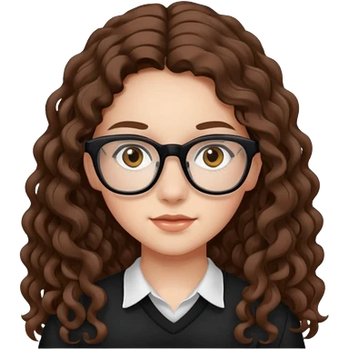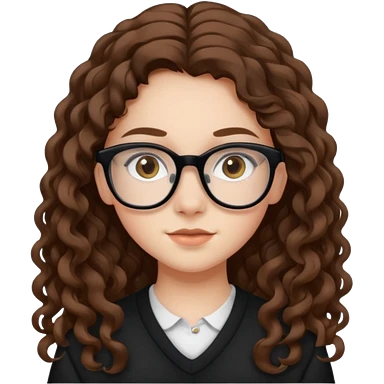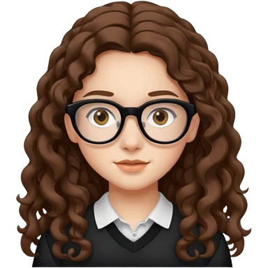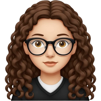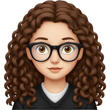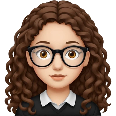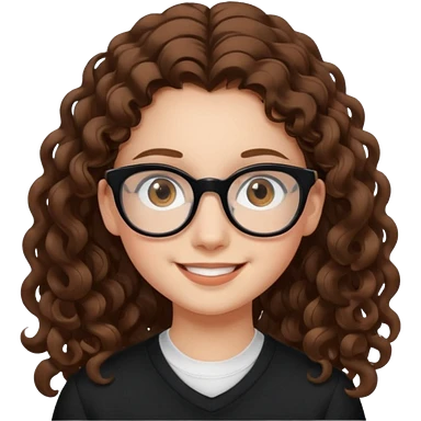 white teen girl with long brown curls and black frame glasses emoji | AI Emoji Generator
