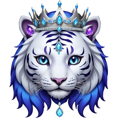 ESO Female white/black tiger khajiit leader of the umbral rose, glowing blue eyes, glowing blue 'third eye' gem, silver crown/tiara with purple gems emoji