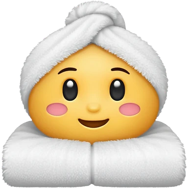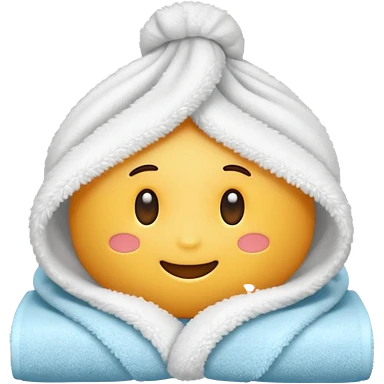 Girl wearing a white towel on her head wearing a white bath robe emoji