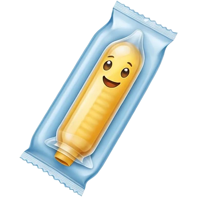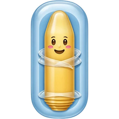 white transparent condom fully covering cylindrical beige-pink colored penis shaft, no face, include glans penis tip and corona line at one end emoji | AI Emoji Generator
