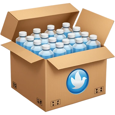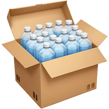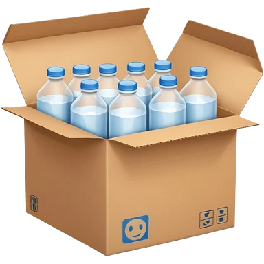 white transparent plastic bottles popping out of a delivery cardboard box emoji