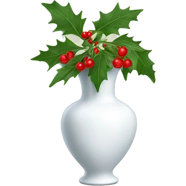 white pretty vase with hollies emoji