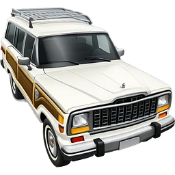 modern white Jeep Wagoneer SUV, sleek design, iconic seven-slot grille, large wheels, and smooth body curves. emoji