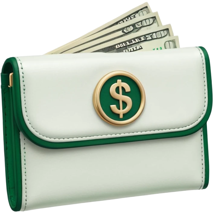 white wallet with dark green clasp, white dollar bills with dark green details visible emoji | AI Emoji Generator