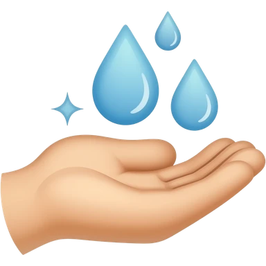 Design a minimal line icon of a hand (palm up) with 2–3 water droplets above and small sparkles to show cleanliness. Use monoline style with consistent stroke, rounded edges, no fill, no gradients, and a white background. Keep it simple, balanced, and clearly readable at small sizes. emoji