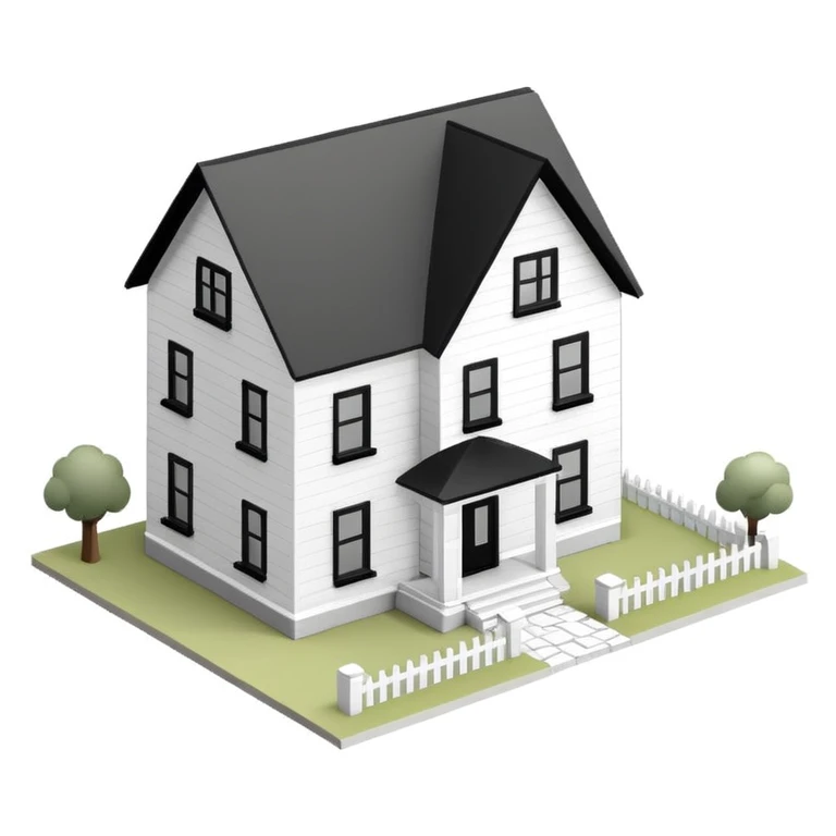 white with black trim modern farmhouse 3d isometric dollhouse emoji | AI Emoji Generator
