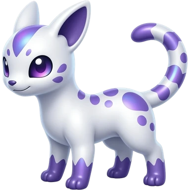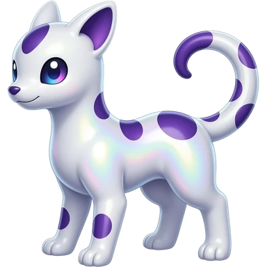 Flecked speckled oriental Hyper-realistic Shiny iridescent glossy oily smooth silky soft White with indigo-Violet-purple-pinkish-gradient markings beautiful handsome gorgeous aesthetic colorful vibrant Vernid-Trico-species-Fakemon-creature by LiLaiRa, 4 legs, 1 tail, random markings, (full body) emoji