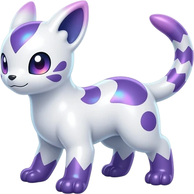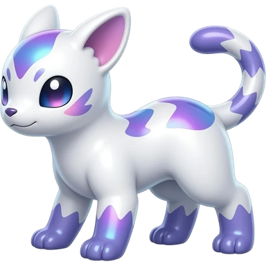 Hyper-realistic Shiny iridescent glossy oily smooth silky soft White with indigo-Violet-purple-pinkish-gradient markings beautiful handsome gorgeous aesthetic colorful vibrant Vernid-Trico-species-Fakemon-creature by LiLaiRa, 4 legs, 1 tail, random markings, (full body) emoji