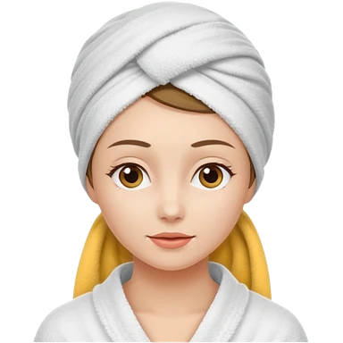 White Girl with a towel on her head in the form of a turban and a bathrobe emoji