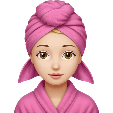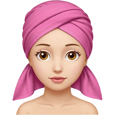 White Woman wearing pale pink towel turban with hazel eyes emoji
