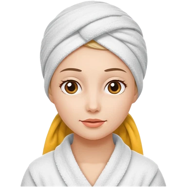 fair skin blue eyed woman wearing white towel on head wearing bathrobe emoji