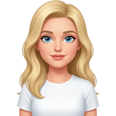 pale skin woman with long blonde Hair, blue eyes, White t-shirt emoji