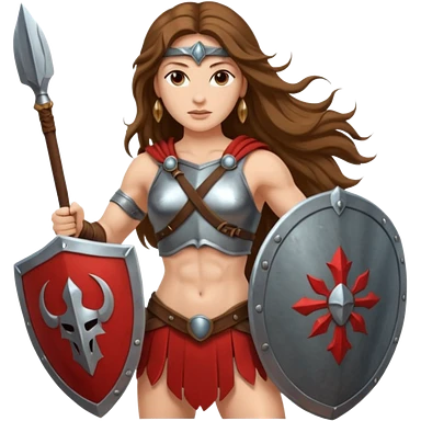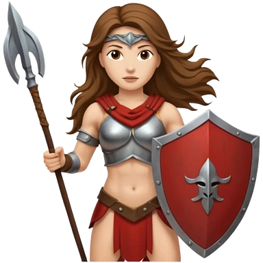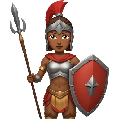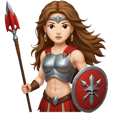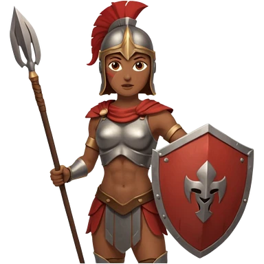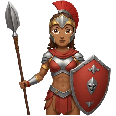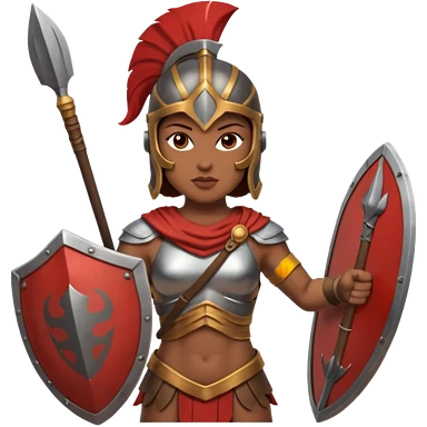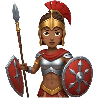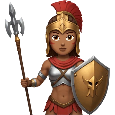 white woman spartan warrior holding spear and shield emoji | AI Emoji Generator