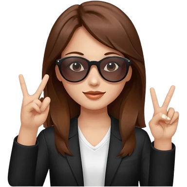 Girl with brown hair doing a peace sign with sunglasses emoji