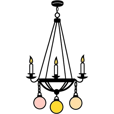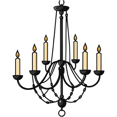 Simple minimalistic hanging chained black Ceiling chandelier with pastel-beige-white candles emoji
