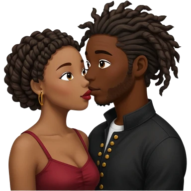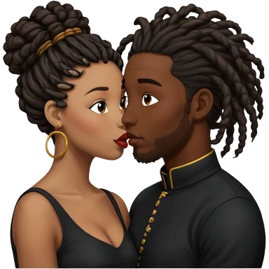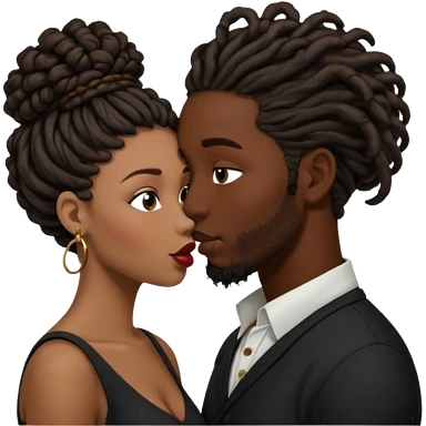 black boyfriend with dreadlock kissing black girl with curly bun emoji