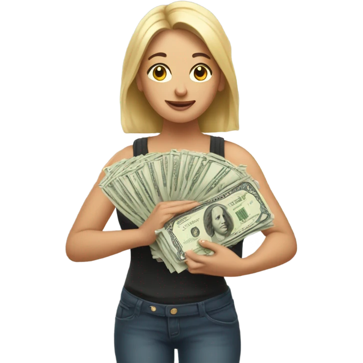 White Women tenderly holding money stack like a baby emoji | AI Emoji Generator