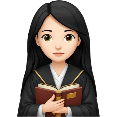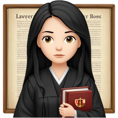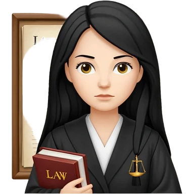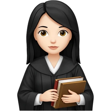 white-women-with-long-black -hair-lawyer-in-lawyer’s-robe. Have law book in hand. emoji
