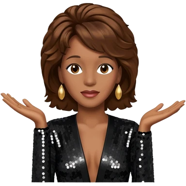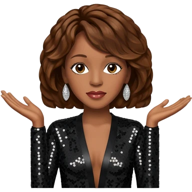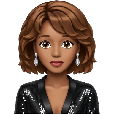 Whitney Houston with brown hair, black sequin long sleeve dress emoji