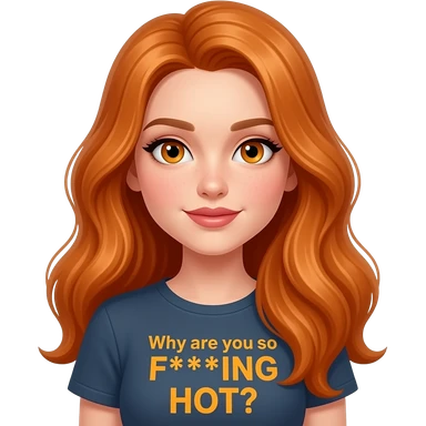 sexy girl with overlong ginger hair and ginger eyes a top with Why are you so F***ING HOT? written on it emoji