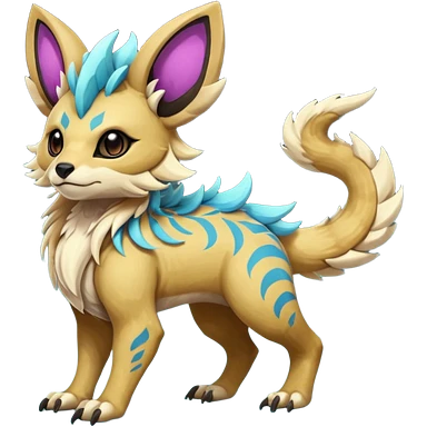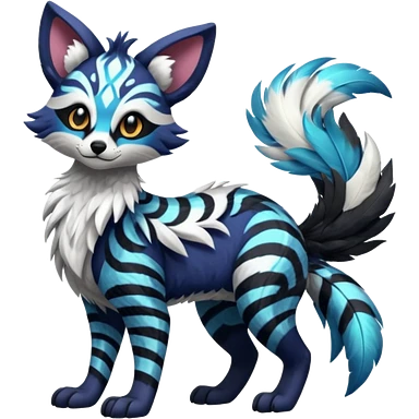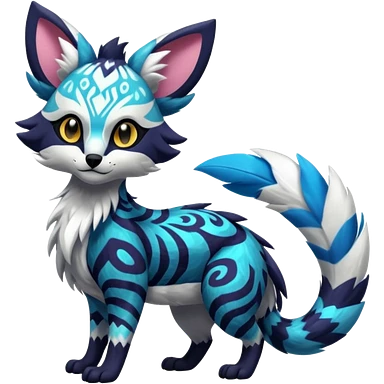 Futuristic furry fluffy floofy feathery tribal marked Genet-Absol-Kyurem-Zeraora-Primagen-fusion-creature emoji