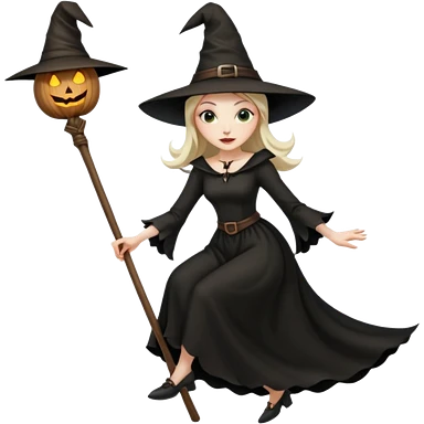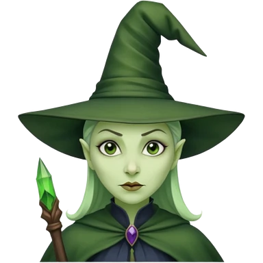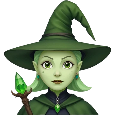 Wicked Witch of the West from the Wizard of Oz with green skin and eyes, brown long hair, black outfit emoji