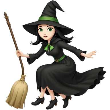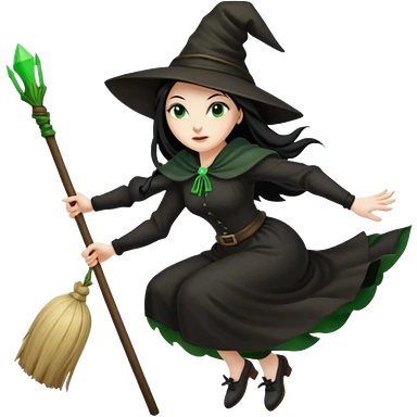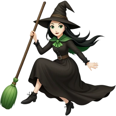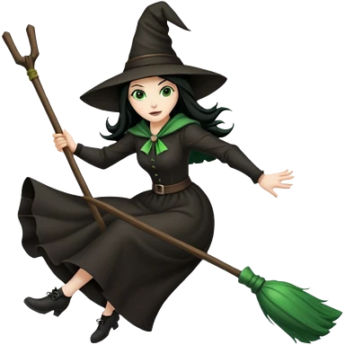 Wicked Witch of the West from The Wizard of Oz with green skin, long brown hair, black outfit emoji