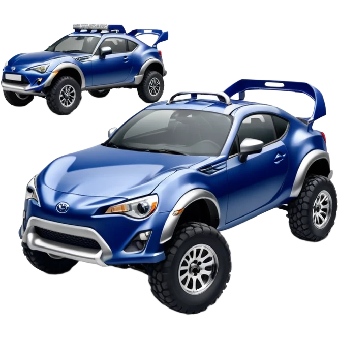 Widened roof Long wheelbase widened pearly midnight snow dark blue 2nd generation 2025 Toyota 86 off-road racer chrome nerf bars,side mounted climbing rock sliders, and silver satin wheels emoji | AI Emoji Generator