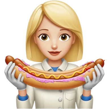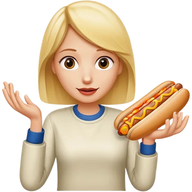 Naked blonde with both hands grabbing hotdog weiner emoji