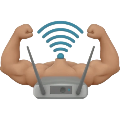a wifi router with strong arms emoji