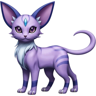 Dusky Purple-Navy Velvet-Coated Shadow-Striated Elegant Feline Absol-Espeon hybrid creature (full body) emoji