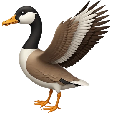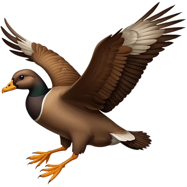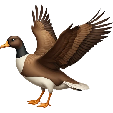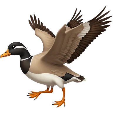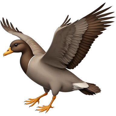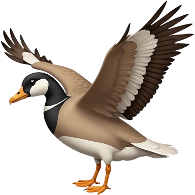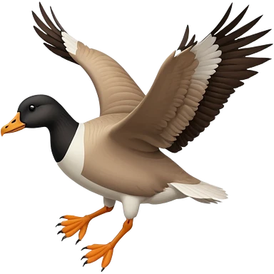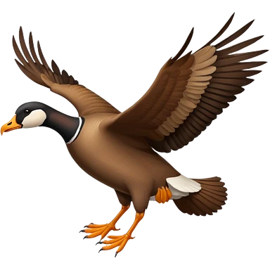 wild goose in flight, with black neck, black feet, black beak, brown wings emoji