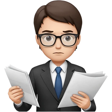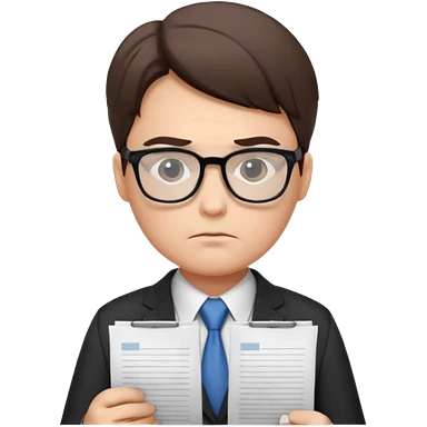 Frowns with Glasses, Office Boss: Business outfit, holding papers, frowning behind glasses, serious look emoji