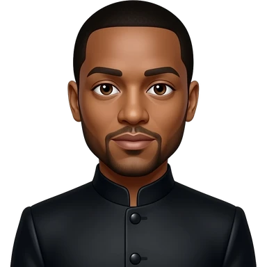 Will.i.am from Black Eyed Peas with dark brown eyes, black hair, black metallic nehru suit emoji