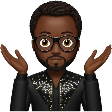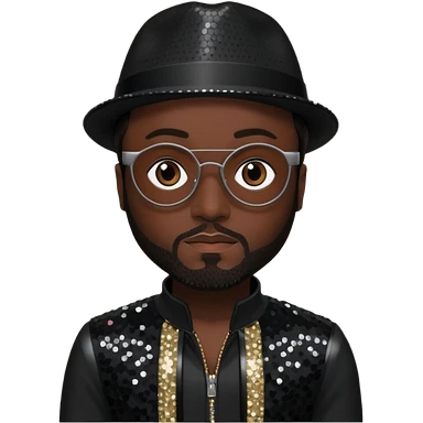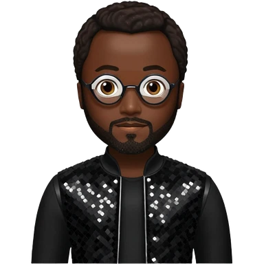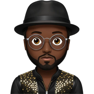 Will.i.am with dark skin, dark brown hair, black sequin outfit emoji