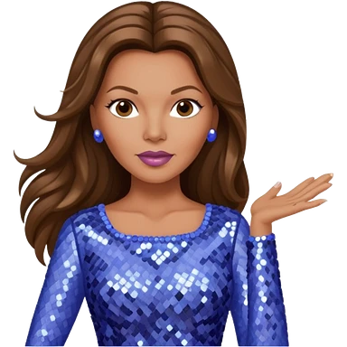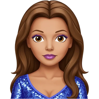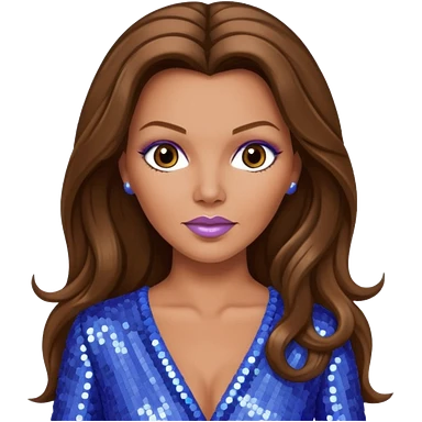 Vanessa Williams with long brown hair, periwinkle sequin outfit emoji