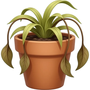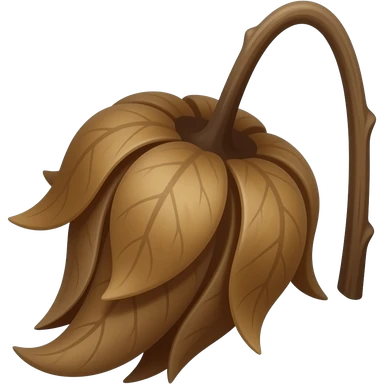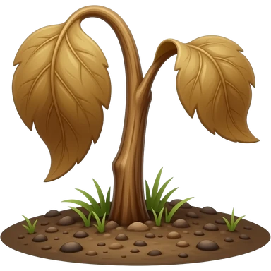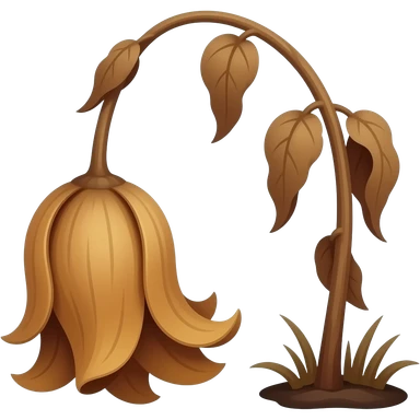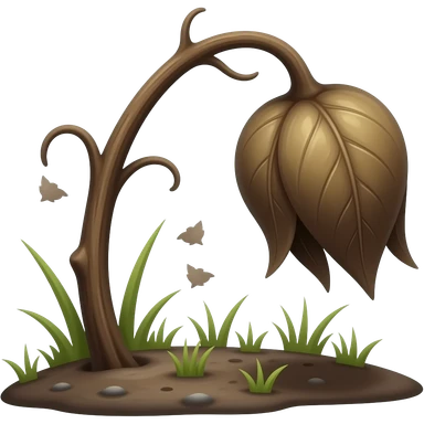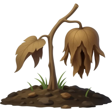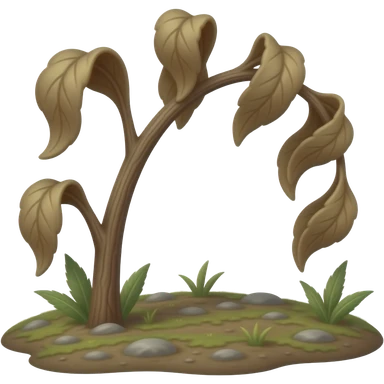 Wilted dead dark brown plant from the ground with leafs hanging and a leaf falling to the ground emoji | AI Emoji Generator