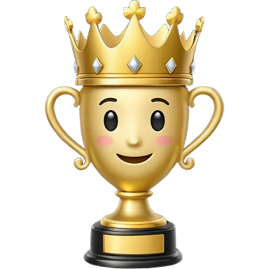 Win Emoji Glossy 3D emoji showing a gold trophy with a small crown, glowing effect, black and gold theme. emoji | AI Emoji Generator