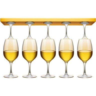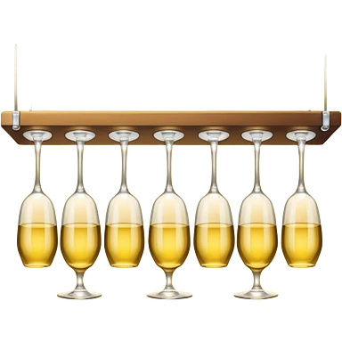 A row of hanging wine glasses upside-down under a yellow light shelf emoji