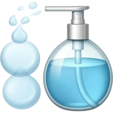 transparent plastic spray bottle filled with light blue liquid, clean trigger top, ergonomic shape, soft curves, slight shine, clarity and freshness, no label, no cloth, no window, closed spray bottle, soft lighting, subtle shadows, emoji scale emoji