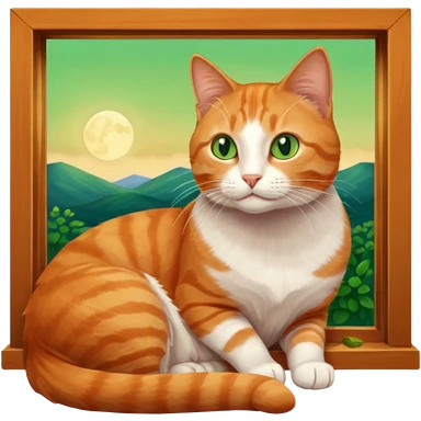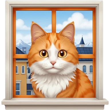 Window with cat on sill + lamp glow, Apartment Windows. emoji | AI Emoji Generator