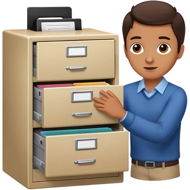A person opening a filing cabinet to search for file emoji