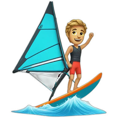 Windsurfer, schwarzer shorty, graue Haare, surft mit einer Hand am Segel emoji