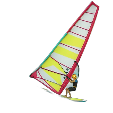 windsurfer blonde woman on green surfboard with purple and white sail where shes surfing and sail is bigger than her emoji