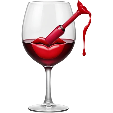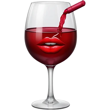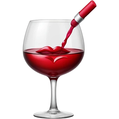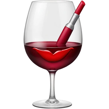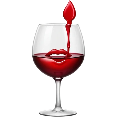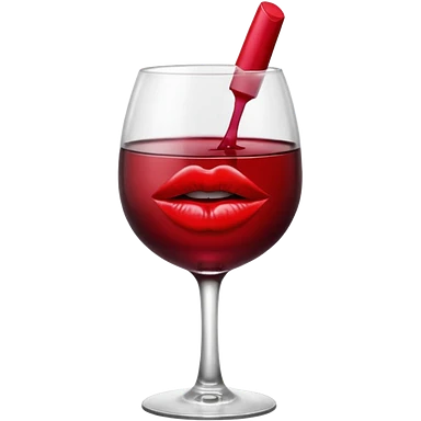 wine glass half full of red wine with a lipstick kiss print on the rim emoji