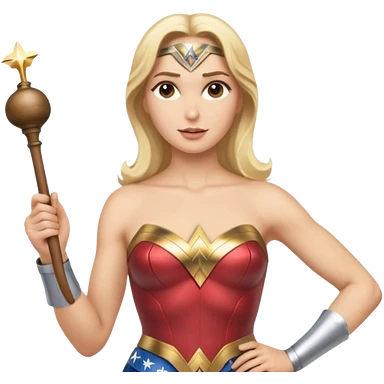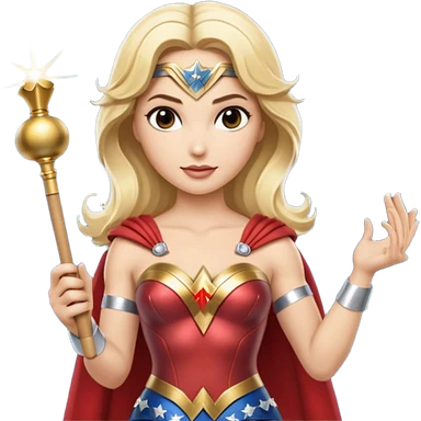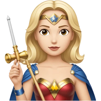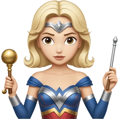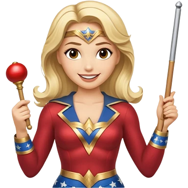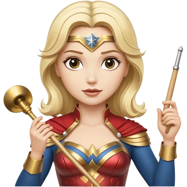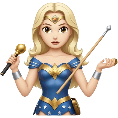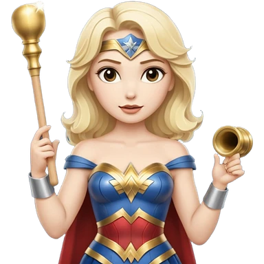 Blonde Wonder Woman holding white orchestra conductor’s baton and bell emoji