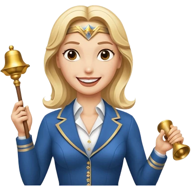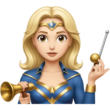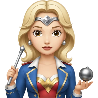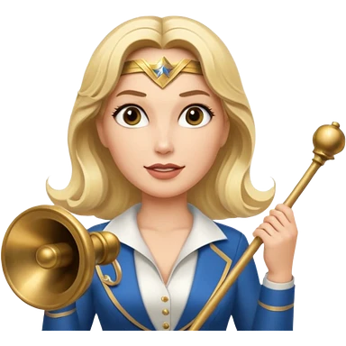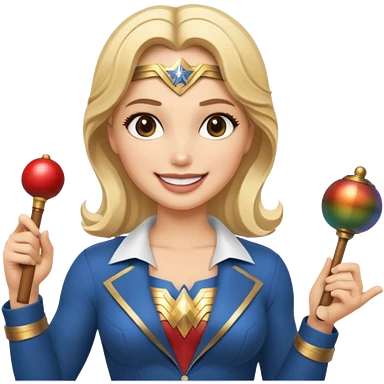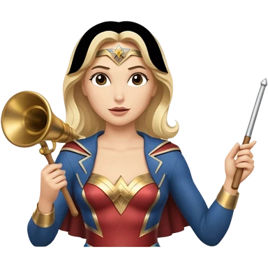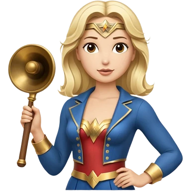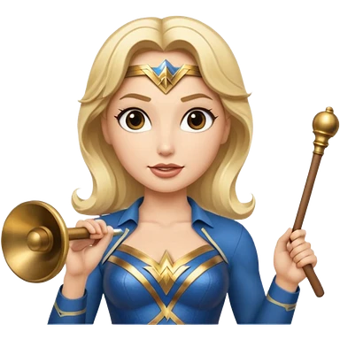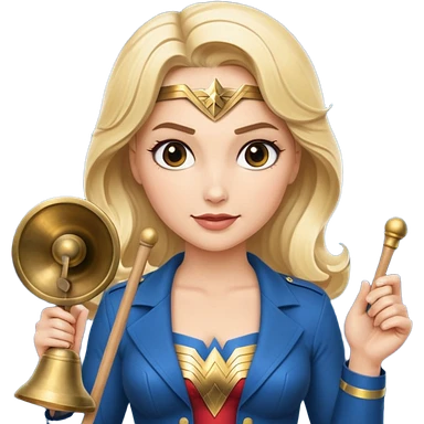 Blonde Wonder Woman holding conductor’s baton and bell emoji